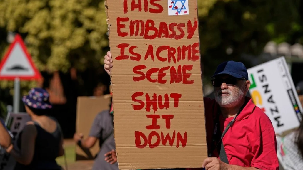 Manifestation militante devant l’ambassade d’Israël à Pretoria, en Afrique du Sud, le vendredi 3 octobre 2025. (AP Photo/Themba Hadebe) | Photo: AP