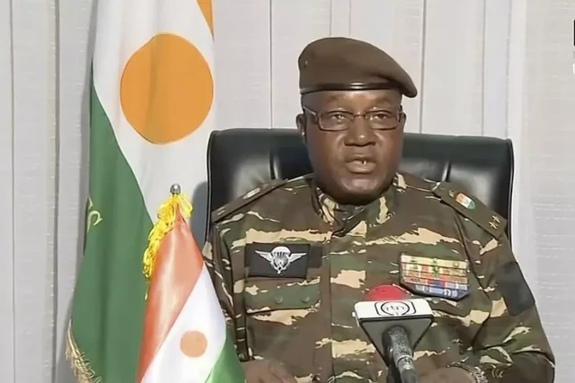 Dans cette image tirée d’une vidéo fournie par ORTN, le chef de la junte le général Abdourahmane Tchiani fait une déclaration le vendredi 28 juillet 2023 à Niamey, au Niger | Capture d’écran: AP