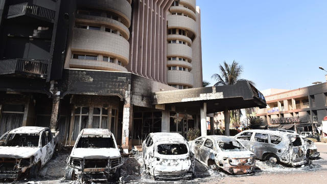 Un premier assaut a été donné par les forces burkinabè, soutenues par des militaires français, vers 2 h. Les environs de l’hôtel se sont transformés en champ de bataille, avec de nombreux véhicules en flammes tout comme la façade de l’hôtel.