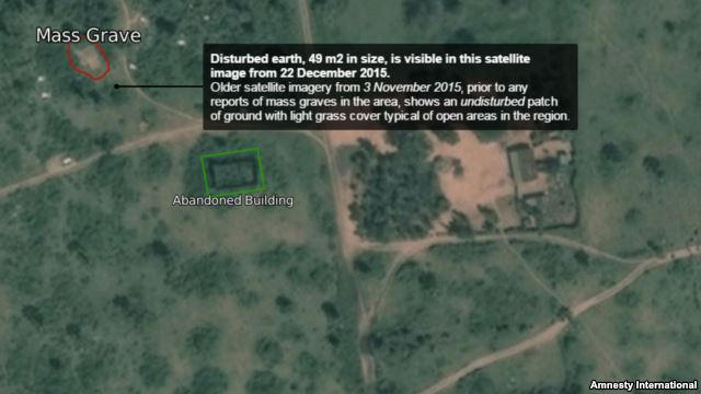 Amnesty explique sur son site internet que « sur les images, qui datent de fin décembre et début janvier, on peut voir des sites où la terre est retournée, ce qui coïncide avec les déclarations des témoins. Ceux-ci ont raconté à Amnesty International que les fosses ont été creusées dans l’après-midi du 11 décembre 2015, journée la plus meurtrière de la crise qui secoue le Burundi. »