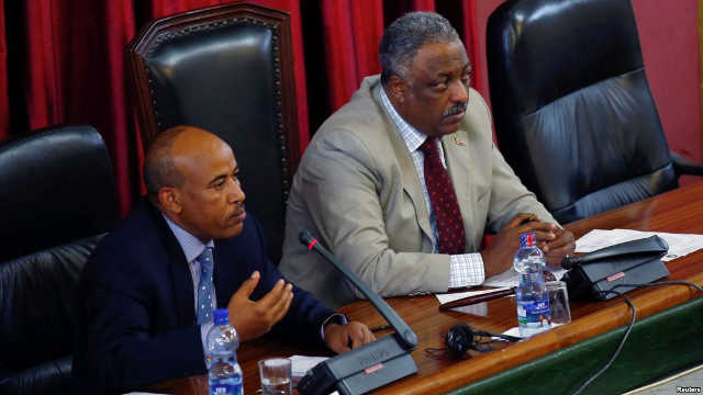 Le ministère de la Défense Siraj Fegessa et le président de l’Assemblée nationale Abadula Gemeda, à droite, à Addis Ababa, le 4 août 2017 | Photo : Reuters