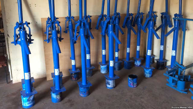 Des pompes à eau prêtent à être installée, à Conakry, le 27 juin 2017 | Photo : VOA/Zakaria Camara