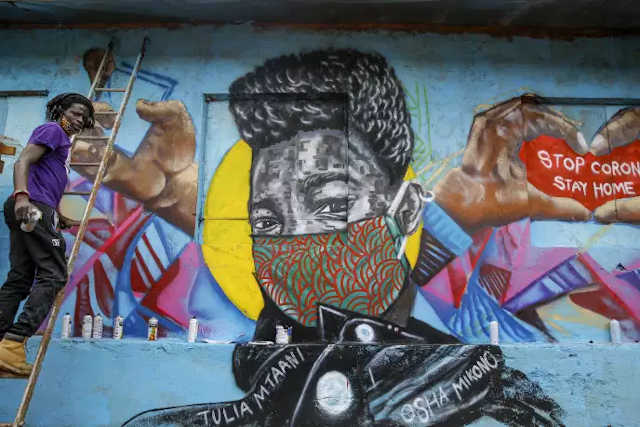 Le graffeur kényan Brian Musasia Wanyande sensibilise aux risques du Covid-19