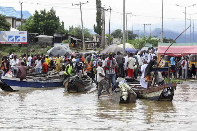 Des habitants tentent de fuir Kogi, inondée, le 6 octobre 2022 | Photo: keystone-sda.ch