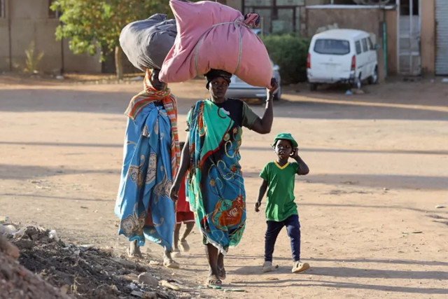 Des personnes fuient leur quartier au milieu des combats entre l’armée et les paramilitaires à Khartoum, le 19 avril 2023, après l’effondrement d’une trêve de 24 heures | Photo: AFP