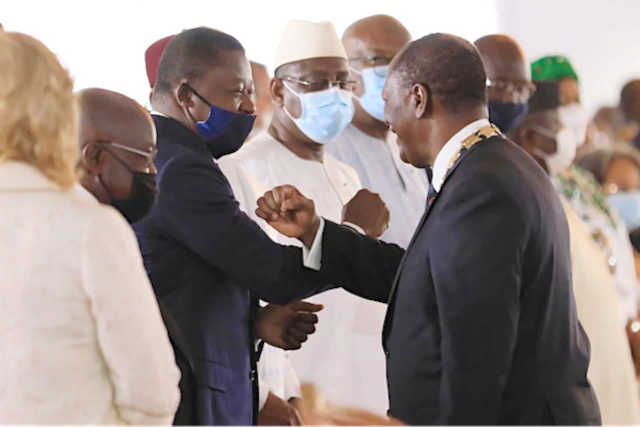 Le doyen des chefs d’Etat et chantre du troisième mandat trônait au premier rang au palais présidentiel d’Abidjan le 14 décembre 2020 à l’occasion de la cérémonie d’investiture d’Alassane Ouattara, nouveau membre du club, élu avec un score à la soviétique de 94,27%. « À78 ans, Alassane Dramane Ouattara, ADO, entame sa carrière de dictateur en Côte d’Ivoire, et il bat tous les records en Afrique francophone du nouveau millénaire. Oui, à 94,27%, même au Togo et en Corée du Nord, l’on trouvait le score de la présidentielle un peu trop exagéré », raille Pierre Adjété.