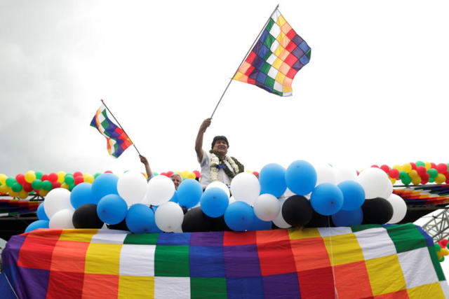 À son retour au pays, au lendemain de l’investiture de celui qui fut son ministre de l’Économie, Evo Morales a été accueilli par des partisans en liesse.