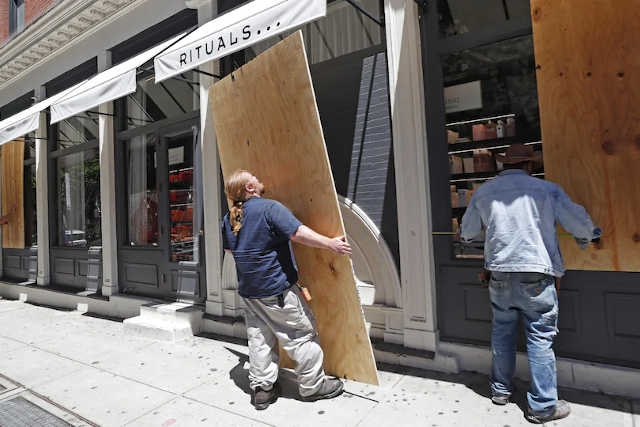 Tout au long de la journée, de nombreuses villes américaines se sont préparées en vue d’une autre nuit d’intenses protestations en barricadant des fenêtres, en ramassant des vitres cassées et en effaçant des graffitis.