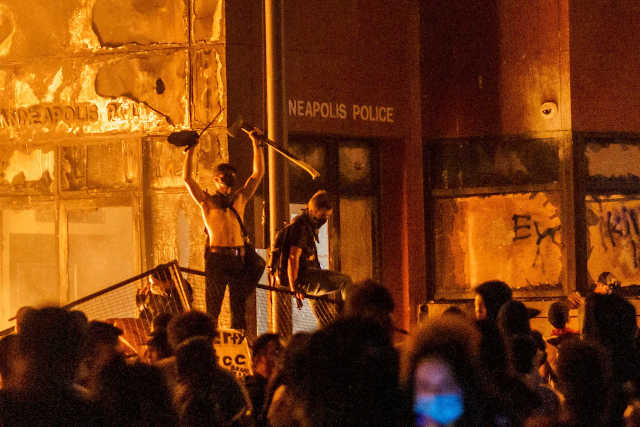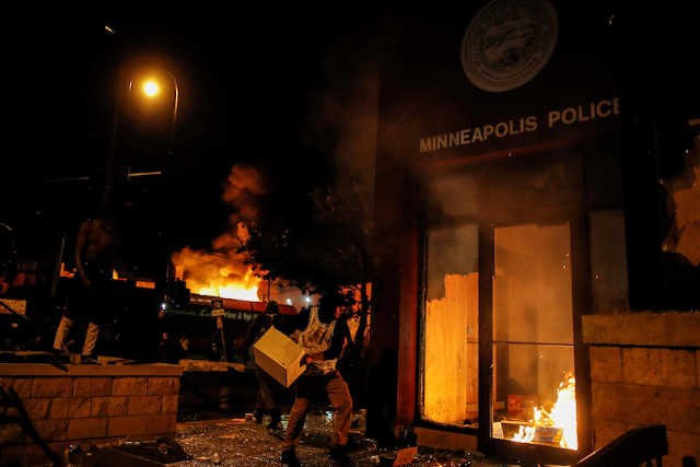 En soirée jeudi, des manifestants ont mis le feu au poste de police où travaillaient les quatre agents impliqués dans la mort de l’homme de 46 ans.