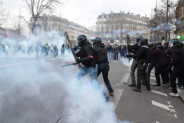 Les échauffourées se sont poursuivies sur la place dans un épais nuage de lacrymogène. Trente trois manifestants ont été interpellés dans la capitale, selon la PP, dont 21 personnes étaient à ce stade en garde à vue, a indiqué le parquet de Paris.