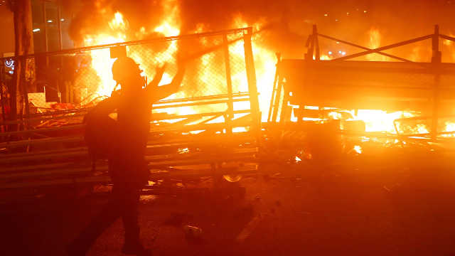 Les manifestants, forcés à reculer, se sont retranchés plus loin, mais ne se sont pas dispersés immédiatement. Certains d’entre eux ont ensuite bâti puis incendié une barricade près du quartier général de la police.