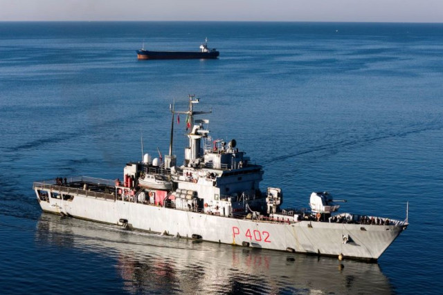 Le navire de la marine italienne Libra s’approche du port de Shengjin, au nord-ouest de l’Albanie, le vendredi 8 novembre 2024, avec le deuxième groupe de huit migrants | Photo: AP