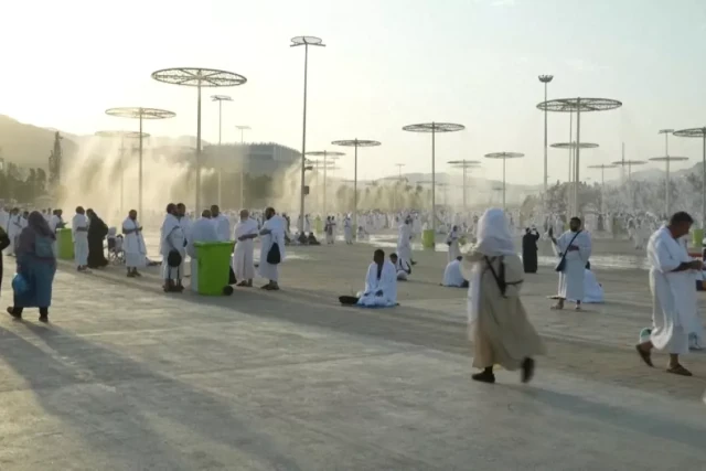 Des systèmes de refroidissement ont été utilisés près du Mont Arafat en Arabie Saoudite pour soulager les pèlerins de la forte chaleur qui coïncide avec le pèlerinage du Hajj de cette année.