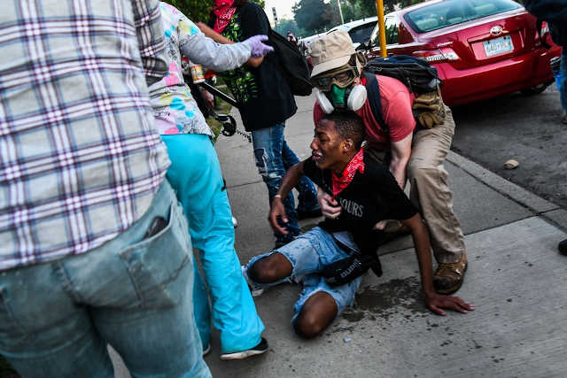 Peu de temps après, les policiers ont tiré des gaz lacrymogènes et ont repoussé des foules de manifestants qui se dirigeaient vers un des postes de police de la ville.