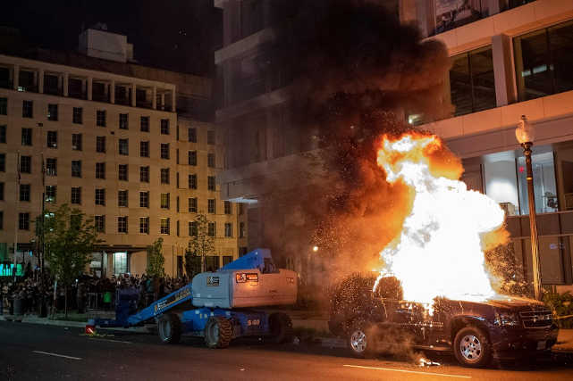 Plus tôt, la mairesse de Washington D. C., Muriel Bowser, a critiqué le président Donald Trump pour ses tweets accusateurs envers elle et le département de la police métropolitaine de Washington, après des manifestations près de la Maison-Blanche vendredi soir.