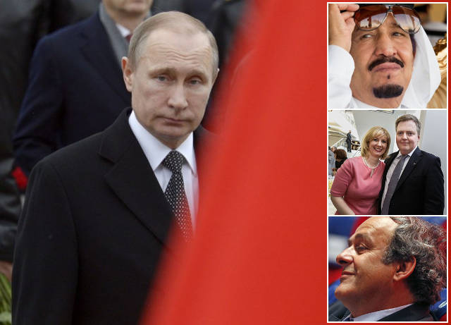 Fraudes fiscales : Panama papers, une fuite massive des documents de la finance dans les paradis fiscaux exposent plus personnalités, dont les associés de Vladimir Poutine (g), le roi d’Arabie Saoudite (d,h), le premier ministre islandais Sigmundur David Gunnlaugsson (d,c d), Michel Platini (d,b), Lionel Messi et bien d’autres | Infog : 27avril.com