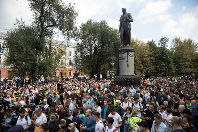 Des manifestations ont eu lieu quasiment chaque week-end à Moscou depuis la mi-juillet pour protester contre l’éviction des candidats de l’opposition de l’élection du Parlement de Moscou, prévue pour le 8 septembre. Non autorisées, la plupart des actions ont été sévèrement réprimées par la police.