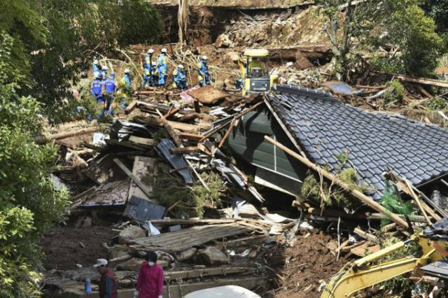 Dans la belle région montagneuse de Minami-Aso, où des torrents de boue ont tout emporté sur leur passage, des dizaines de sauveteurs munis de pelles fouillaient les décombres, sous le soleil revenu après d’abondantes pluies qui font redouter d’autres drames.