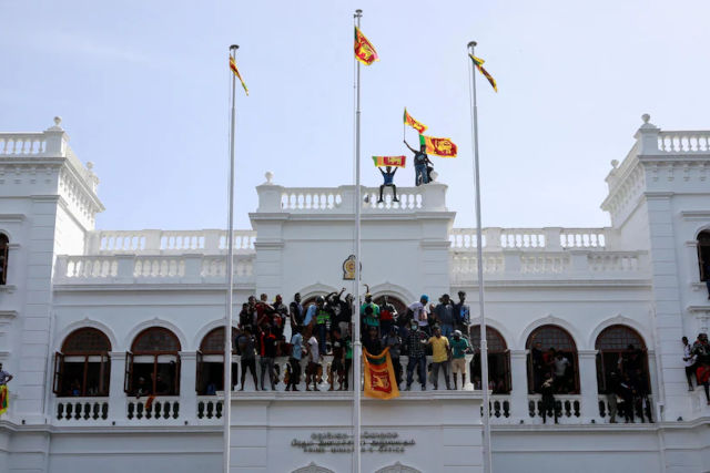 Ces scènes rappellent la prise du palais présidentiel samedi qui avait obligé M. Rajapaksa à fuir avant de gagner les Maldives mercredi.