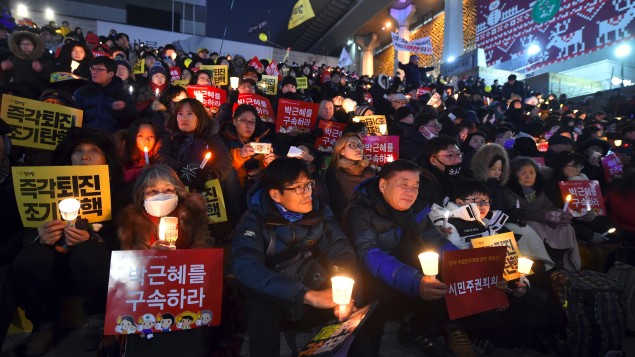 À Séoul, des centaines de milliers de manifestants sont sortis dans les rues pour demander à la présidente sud-coréenne Park Geun-Hye de quitter ses fonctions et pour réclamer son arrestation immédiate.