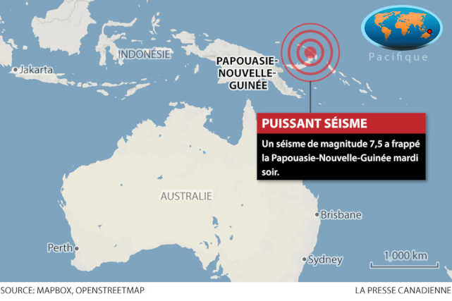 Le US Geological Survey (USGS) a déclaré que le séisme avait atteint une magnitude de 7,5 et était situé à 45 km au nord-est de Kokopo. Sa profondeur était relativement faible, soit dix kilomètres, a-t-on ajouté.