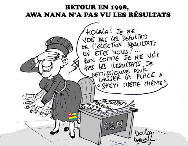 « En 1998, il y avait 9 membres à la CEN : 4 de l’opposition et 4 du pouvoir et la présidente Awa Nana qui était présidente de la Cour d’Appel, et c’est à ce titre qu’elle est devenue Présidente de la CENI. Lorsque la plupart des résultats sont tombés, Eyadema était largement battu. C’est en voyant l’ampleur de la défaite que les 4 membres du Rpt ont commencé à multiplier les obstacles pour la proclamation. Mais comme ces manœuvres n’aboutissaient pas, les 4 ont démissionné pour paralyser le travail. Mais leur démission n’emportait pas la majorité, notamment les 4 de l’opposition plus Awa Nana. C’est là où elle a été sommée de démissionner pour mettre les représentants de l’opposition en minorité. Tous les résultats étaient en possession de tous les membres. Les membres de l’opposition à la CENI sont encore vivants. Il y avait Amaglo, Ali Diabacte, Sebabi Boutchou, je crois, et Ahoomey-Zunu », réagissait déjà sur la toile un compatriote à la lecture de ces propos de « Mme HCRRUN ». Et il est rejoint par l’un des acteurs de la commission électorale de l’époque que nous avons joint ce samedi.