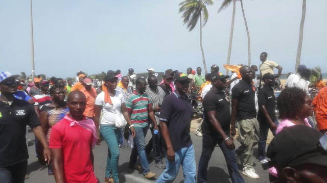 Mais c’est une occasion au chairman Francis Pedro AMUZUN de leur fait savoir que cette lutte, est commune et les concerne aussi en tant que citoyens d’un Togo qui court à la dérive et où les plus forts écrasent tous les jours les faibles. « Vous aussi, cette lutte vous concerne parce que vos conditions de vie et de travail seront améliorées à travers la mise en œuvre de ces réformes-là », a-t-il martelé à leur endroit. Sans incident donc, la marche de protestation a abouti à la plage de Lomé, en face de l’ancienne présidence de la République où attendait une foule impacte. Un grand meeting d’informations a alors débuté.