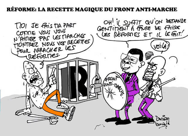 Dans le feu de la dynamique de « délégitimation » de la marche par les « opposants de l’opposition », il a été reproché à l’ANC de n’avoir pas introduit une (autre) proposition de loi de réforme à l’Assemblée nationale. Et pourtant il y en avait eu une première faite en novembre 2014 par l’opposition parlementaire mais qui n’a pas connu de suite favorable, simplement à cause du refus de l’opposition d’accorder des passe-droits réclamés à Faure Gnassingbé qui voulait briguer un 3e mandat. Le projet de loi initié par le gouvernement lui-même a été d’ailleurs rejeté en juin 2014 par les propres députés du RPT/UNIR. Il se pose alors plus que jamais la problématique de la démarche idoine et efficace pour la mise en œuvre des réformes. C’est ici que les anti-marche du CAP 2015 sont appelés à faire leurs preuves.