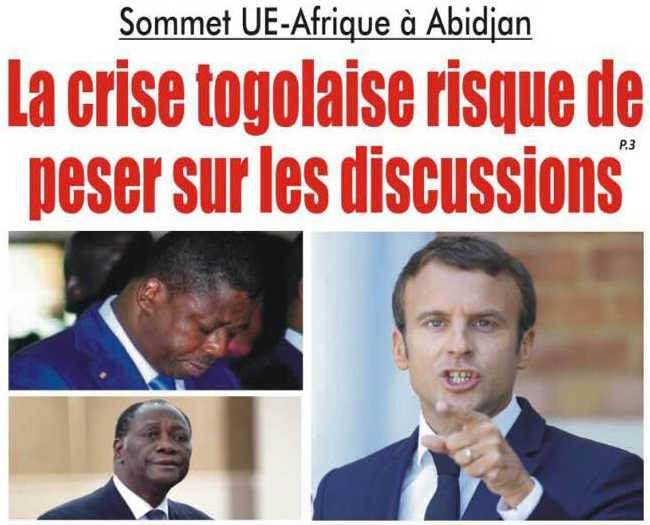 Depuis, les lignes n’ont pas bougé du côté de Faure Gnassingbé, même si un dialogue est en vue. Visiblement, le souhait de la France de voir le dossier togolais bouclé avant le sommet UE-Afrique la semaine prochaine ne sera pas effectif. Du coup, il faut éviter que la crise togolaise ne se transporte à Abidjan. L’invitation d’Alassane Ouattara à Faure Gnassingbé qui s’est rendu à Abidjan hier répond à ce souci, mais aussi à bien d’autres liés à la prise de parole au cours de ce sommet. Si Faure Gnassingbé, Président en exercice de la CEDEAO, devait être présent à ce sommet d’Abidjan, il devra se résoudre à certaines dispositions protocolaires du fait que la situation de son pays ne fait pas de lui une référence démocratique, encore moins un dirigeant respectueux des droits de l’Homme. Faure Gnassingbé est plus que jamais sous pression.
