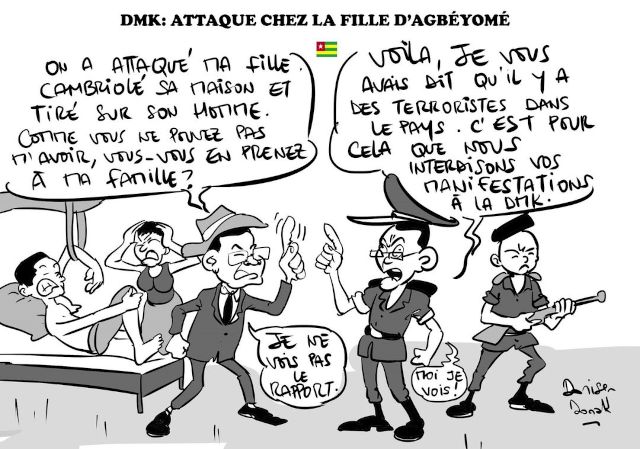 Même si la principale interrogation est relative aux commanditaires et exécutants de cette besogne d’une bassesse indescriptible, tout porte à croire qu’il s’agit d’un acte de violence organisée par des gens qui détiennent une certaine autorité. En attendant les conclusions des enquêtes qui seront menées par la Police nationale ou la Gendarmerie, des sources proches des victimes soulignent qu’il s’agit d’un acte imputable aux autorités togolaises, puisque des hommes parmi les agresseurs portaient des uniformes des forces de sécurité et de défense. Il y a donc lieu de s’inquiéter pour la vie des acteurs politiques et leurs proches ainsi que pour celle de tous ceux qui dénoncent la gestion calamiteuse du pays.