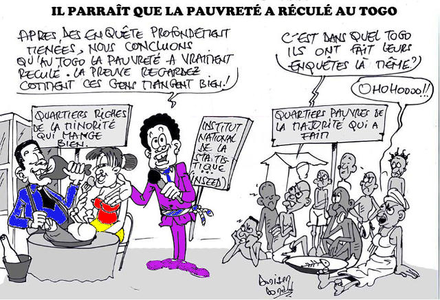 Les conditions de vie de la population « gnassingbélandaise » se sont améliorées ! C’est la dernière trouvaille du pouvoir pour enjoliver l’année 2015 qui égraine ses derniers soupirs. Ce serait la conclusion d’une étude réalisée par l’Institut national de la statistique et des études économiques et démographiques (Inseed), basée sur l’expression des ménages et qui fait croire à une amélioration des conditions de vie de la population.
