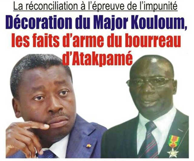 26 avril 2017, veille de l’anniversaire du jour où le Togo s’est affranchi du joug de l’oppression, Faure Gnassingbé a décidé de remettre une distinction de la République au très controversé et cité dans d’innombrables crimes, Major Kouloum. Même si cet acte est loin d’être surprenant, il vient de tirer les choses au clair. Le pseudo- projet de réconciliation n’est qu’une véritable farce qui de jour en jour mérite bien ce nom.