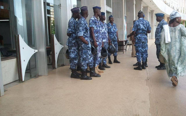Des forces de l’ordre bunkerisent le Palais de congrès, siège de l’Assemblée nationale à Lomé, vendredi 27 mai 2016 | Photo : DB-Z / FB