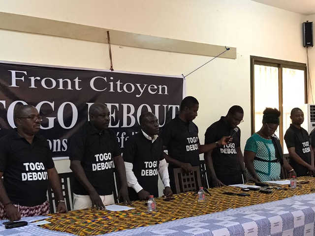 Depuis le 19 août 2017, le peuple togolais est rentré dans une nouvelle ère de sa lutte pour plus de démocratie et de liberté. Seulement le régime de Faure Gnassingbé reste autiste aux aspirations profondes des Togolais, pire lui oppose une sanglante répression. Pour venir en appui aux forces démocratiques, des organisations de la société civile se sont constituées en un front dénommé : «TOGO DEBOUT ». Ce nouveau regroupement s’engage à défendre les intérêts du peuple qui lutte pour sa liberté, au-delà de toute prise de position partisane, de considération identitaire et de toute croyance religieuse. Ce front a été porté sur les fonts baptismaux le 22 septembre 2017. C’était à travers une conférence de presse sanctionnée par une déclaration.