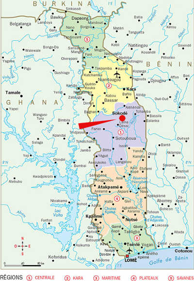 Chef-lieu de la préfecture de Tchaoudjo, au cœur de la région centrale, la ville loge à 347 Km du côté nord de Lomé, la capitale. Située entre le Mô et le Mono, malgré un charcutage géopolitique biaisé, la citée des guerriers est indissociable de sa sœur cadette, Bafilo. Centre commercial nourri de la moisson d’une vaste région fertile et des accointances avec les deux pays voisins, le Bénin et le Ghana, la bourgade que la politique politicienne présente aujourd’hui vainement comme extrémiste est évidement à dominance musulmane. Sauf que, cette forte tendance n’empêche pas à la ville de Djobo Boukari d’être un « melting-pot » confessionnel. Entre appels de muezzins et cloches du clergé, elle a vu prospérer les premières écoles chrétiennes et professionnelles des temps coloniaux. Cette référence hospitalière fait de la cité une base pour la formation de la quasi-totalité des grands cadres que le Togo va produire à la sortie des indépendances. Naturellement, un environnement où cohabitent toutes les religions, des citoyens continuent par porter des noms islamo-chrétiens sans que cela ne déplace les mœurs. Simple carrefour qui accueillait une vague d’artisans, de commerçants, déjà en mouvements organisés depuis le 16eme siècle, en devenait une ville vers 1897, Sokodé n’envisageait pas être à ce stade à notre ère; tant le site était géostratégique et la région ne souffrait de quoi rendre ses fils heureux. Mais très vite, étouffé par une adversité politique et un marasme national dont toutes les villes seront victimes, les bras valides seront poussés à l’exil, principalement au Ghana, au Nigeria et en Occident.
