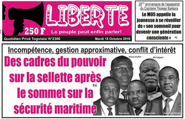 Source : Shalom Ametokpo, Liberté No. 2300 du 18 octobre 2016