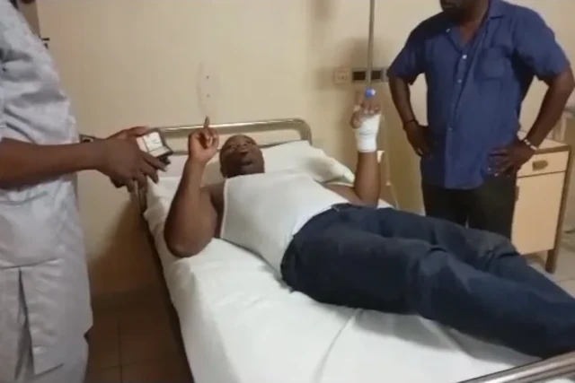 Lors d’une rencontre citoyenne initiée par la « Dynamique pour la Majorité du Peuple » (DMP), regroupement de partis politiques d’opposition du Togo, le député sénégalais Guy Marius SAGNA qui était l’invité cet après-midi à cette rencontre, a été violemment agressé par des inconnus et actuellement hospitalisé dans une clinique. (Photo : Guy Marius Sagna dans un lit d’hôpital)
