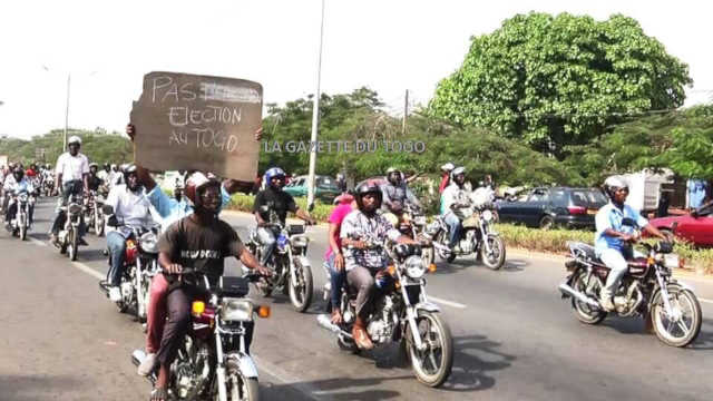 Interdiction illégale des activités de la C14; Bouclage hermétique du siège de la CDPA par des forces du désordre de l’ordre du régime; Intervention des éléments incultes de l’Unité Spéciale d’Intervention de la Gendarmerie (USIG) avec des tirs de gaz lacrymogène et au moins un tir à balle réelle à bout portant sur un jeune caravanier; Remise en services des miliciens tueurs dans les périphéries de la capitale. La caravane de la C14 a bravé tous ces obstacles pour sillonner majestueusement défiante les principales artères de Lomé ce jeudi 6 décembre 2018. Les caravaniers, galvanisés par de la musique et les klaxons des motos, scandaient à tout rompre : « Pas d’élection!», « Pas d’élection au Togo! », « Pas d’élection, Buhari au Togo! »