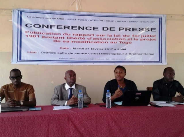 Six Organisations de la société civile (OSC) togolaise (ACAT-Togo, ATDPDH, CEJP, GRAD, SADD et SYNPHOT) ont tenu mardi à Brother Home à Lomé, une conférence de presse au cours de laquelle elles ont rendu public un rapport sur l’état de la modification de la loi du 1er juillet 1901 qui régit le monde associatif au Togo et les conséquences qui peuvent en découler, a constaté sur place un reporter de l’Agence de presse Afreepress.