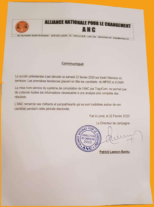 Un peu plus tôt l’ANC a confirme les mêmes tendances préliminaires en stipulant dans un communiqué entre autre ceci : « Le scrutin présidentiel s’est déroulé ce samedi 22 février 2020 sur toute l’étendue du territoire. Les premières tendances placent en tête les candidats du MPDD et d’UNIR » (voir communiqué intégral ci-dessous)