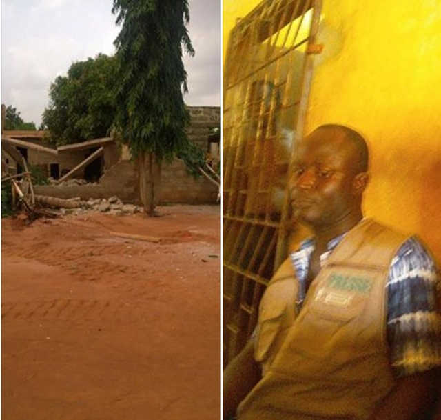 « Il y a un litige foncier à Akato-Viépé. Sur décision de la Cour suprême, certaines constructions doivent être démolies. Les gendarmes étaient venus pour faire sortir les gens de chez eux. Les hommes en treillis étaient une centaine. Naturellement, je suis allé pour faire un reportage. J’avais mon gilet et ma carte de presse. Quand je suis descendu de la moto, je me suis approché des gendarmes en me présentant.
