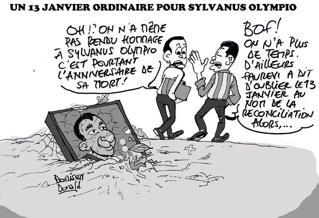 « (…) En relation avec la famille, le gouvernement prendra les dispositions nécessaires pour le retour au Togo des restes du président Sylvanus Olympio, premier président du Togo afin que la nation lui rende des honneurs dus à son rang. C’est pourquoi je voudrais vous annoncer qu’à partir de 2010, et dans une volonté de panser les blessures résultant de notre histoire tourmentée, le calendrier républicain de l’année sera redéfini », c’est la profession de foi faite par Faure Gnassingbé en 2010, au nom de l’incantation de réconciliation nationale.
