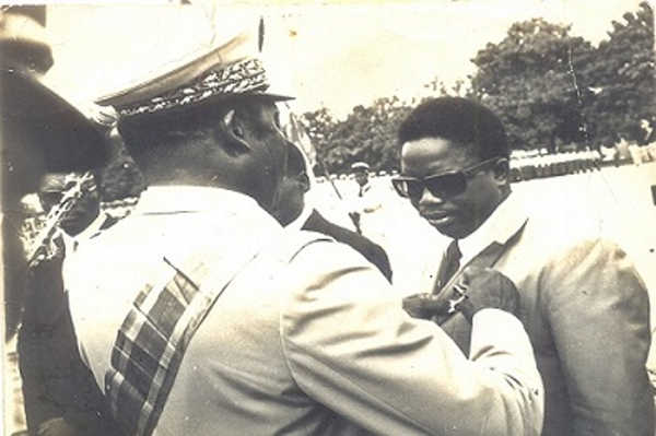 Me Apollinaire Yawovi Madji Agboyibo, en train d’être décoré par Eyadéma Gnassingbé | Archives