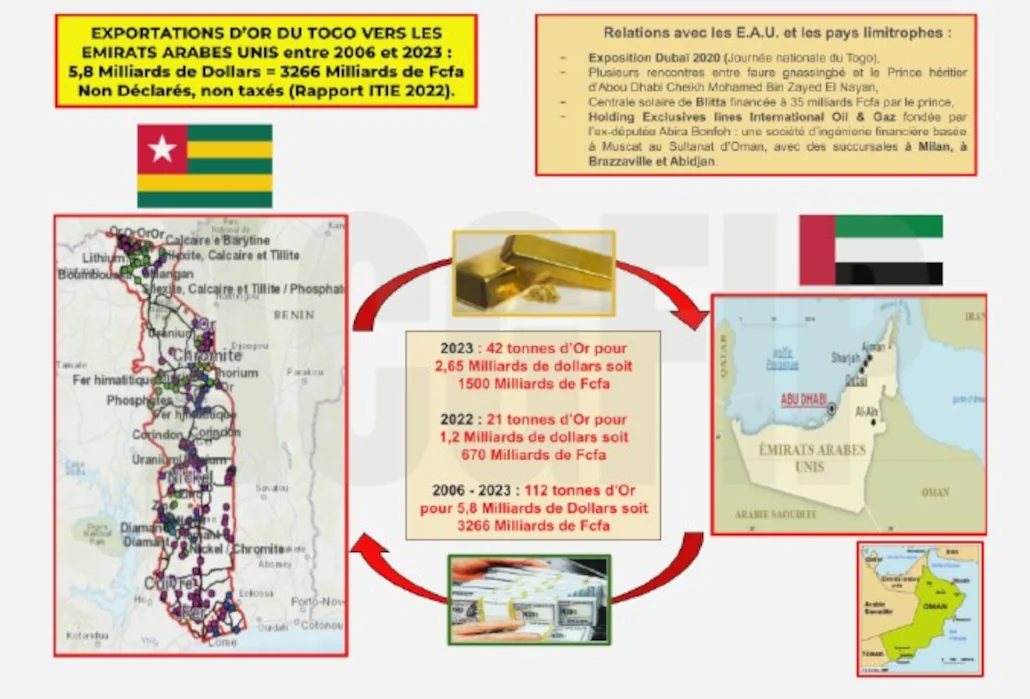 En somme, au Togo, nous avons un système de contrôle défaillant ou alors complice. Toujours est-il que les administrations clés — Douanes, Mines, Impôts — déclarent zéro exportation, alors que les partenaires internationaux déclarent plusieurs milliards de dollars importés du Togo sur plusieurs années.