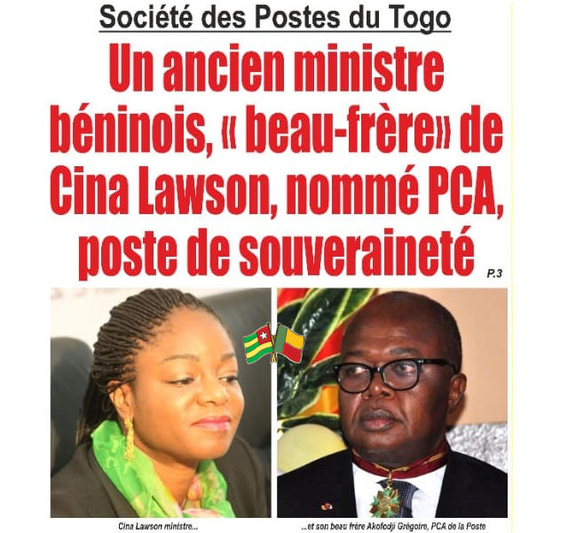 A moins que l’objectif poursuivi par la ministre Cina Lawson soit de faire nommer un proche, qui plus est Béninois à la tête du Conseil d’administration d’une société togolaise en lieu et place des citoyens, on comprend très mal que le sieur Akofodji préside le Conseil d’administration de la Poste au Togo. Ou alors la ministre Cina Lawson veut faire de cette société un patrimoine privé exclusivement pour les membres de sa famille.