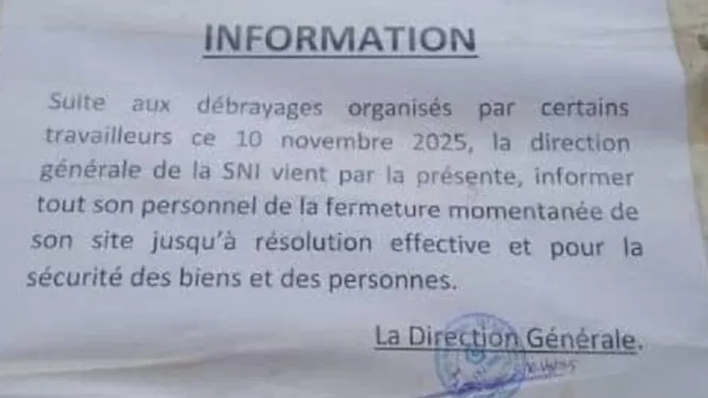 Les conditions difficiles de travail des ouvriers à la SNI étaient parvenues aux autorités de la localité qui ont saisi le ministère du Travail.
