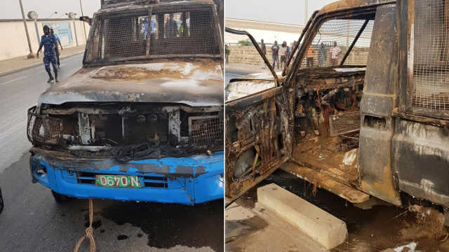 Un véhicule de la Police nationale de retour de mission de confiscation de carburant frelaté dénommée « opération Entonnoir » a pris feu ce matin dans la zone portuaire non loin de la société de fabrication e produits laitiers FAN MILK à Lomé.