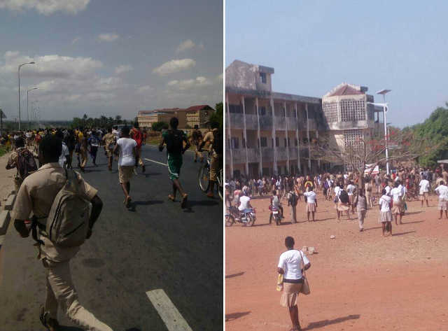 Des élèves togolais dans la rue à Kara (d) et à adétikopé | Photo : LS / FB