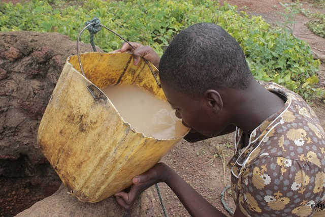 «Cette eau contaminée, qui manque d’assainissement, provient des fois du fleuve Ôti qui est à 25 km de notre maison et parfois de puits abandonnés.» précise-t-elle en nous montrant de son index droit un vieux puits au loin. Nous nous rapprochons d’avantage pour mieux regarder ce qui s’y trouve. Le puits est abandonné et sert désormais de poubelle où les villageois viennent jeter des déchets ménagers par moment.
