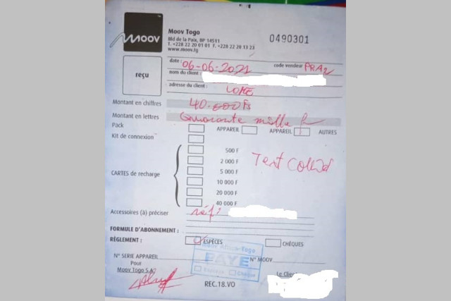 Des reçus illustratifs proviennent de passagers venant du Mali et n’ayant pas reçu de papier physique, et de la Côte d’Ivoire à qui un reçu de l’opérateur de téléphonie mobile Moov lui a été tendu à l’aéroport de Lomé. Des situations qui étalent une rapacité des autorités et qu’on tente de cacher.